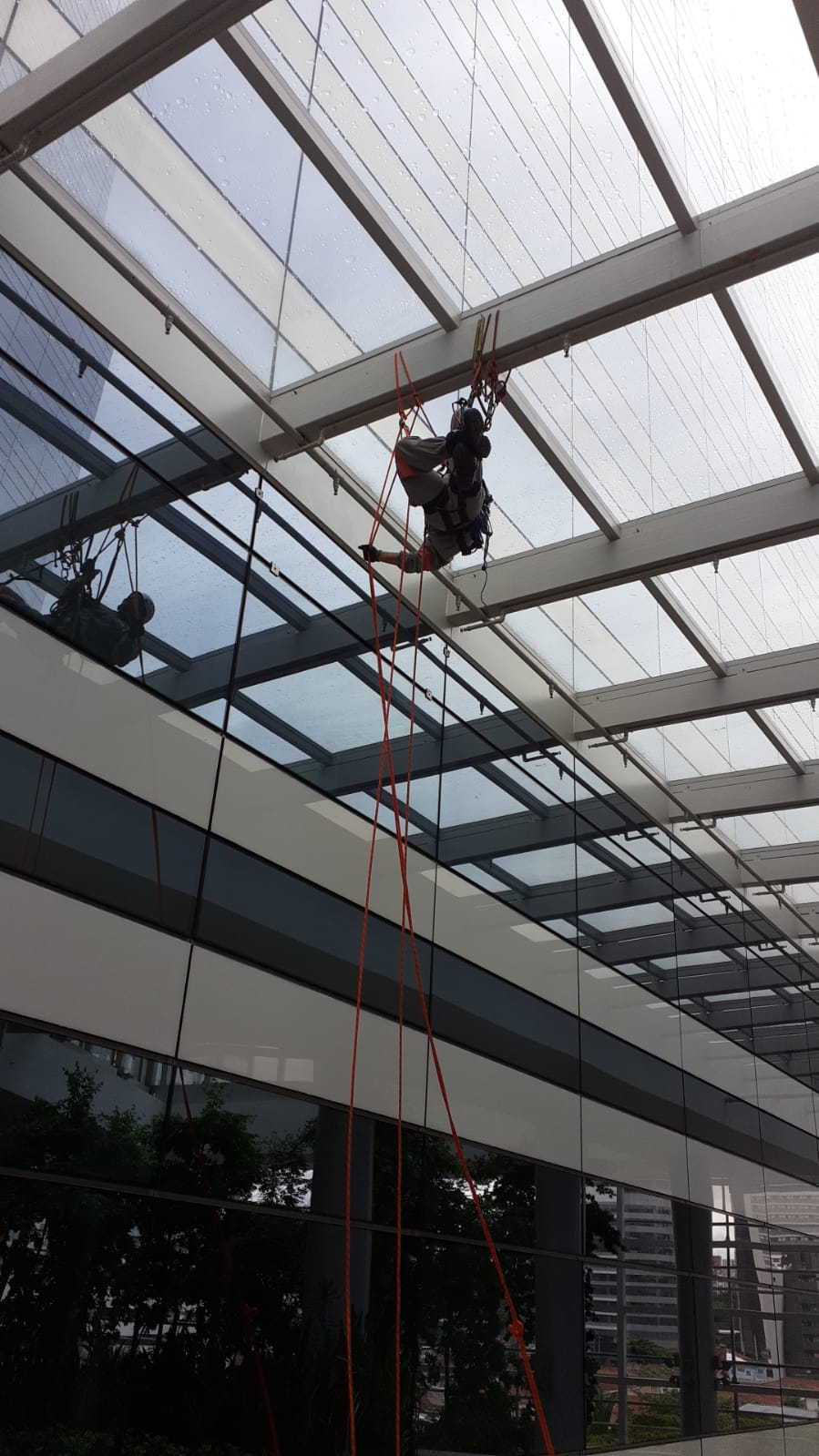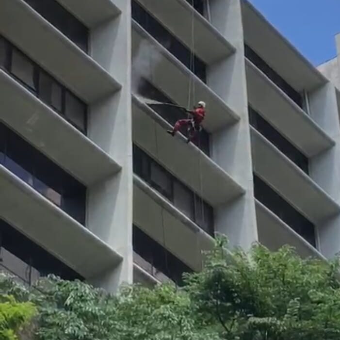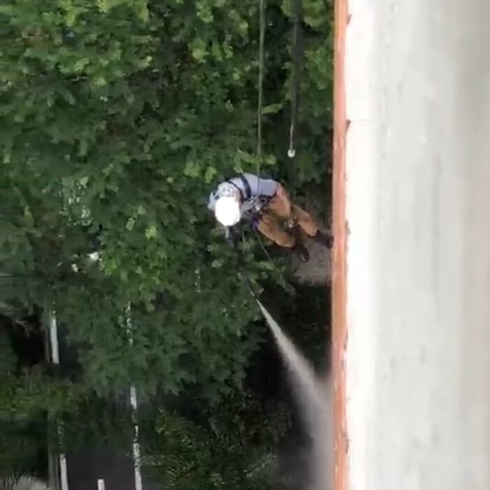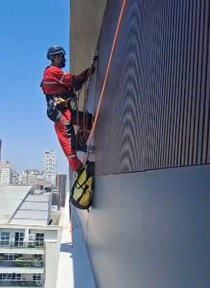 Serviços realizado com acesso por rapel. Esse serviço é essencial para preservar a aparência do imóvel, prolongar a vida útil dos materiais e melhorar a imagem do estabelecimento.